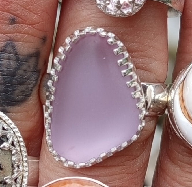 🌷 3) 🌊 Sea Glass Ring - Size 7 - 54mm