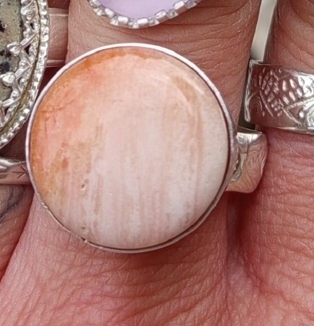 🌅 6) Coral Jasper Ring - Size 8 - 59mm