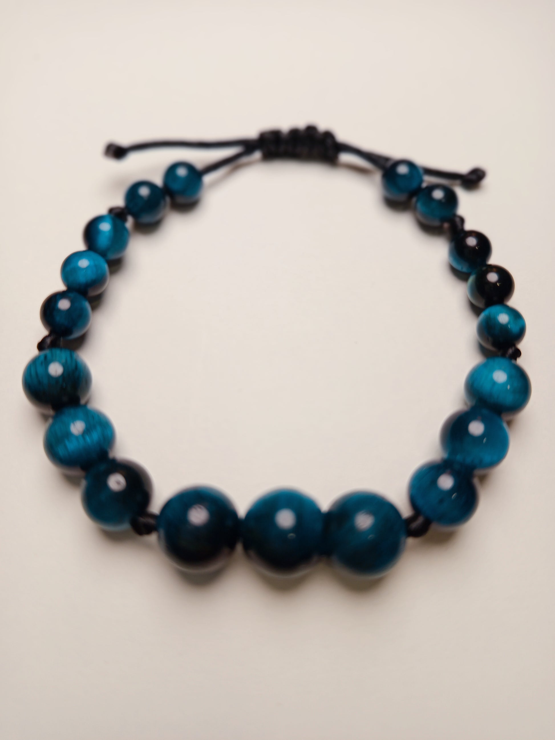 Let the deep hues of the Midnight Tide Bracelet draw you into the magic of the night sea. Crafted with glossy blue tiger eye beads that shimmer between black and ocean teal, this piece evokes the mystery and depth of water under the moonlight. Strung on a durable black adjustable cord, it’s perfect for everyday wear or adding a bold, elegant touch to your style. Ideal for those who feel connected to the ocean, strength, and inner calm.