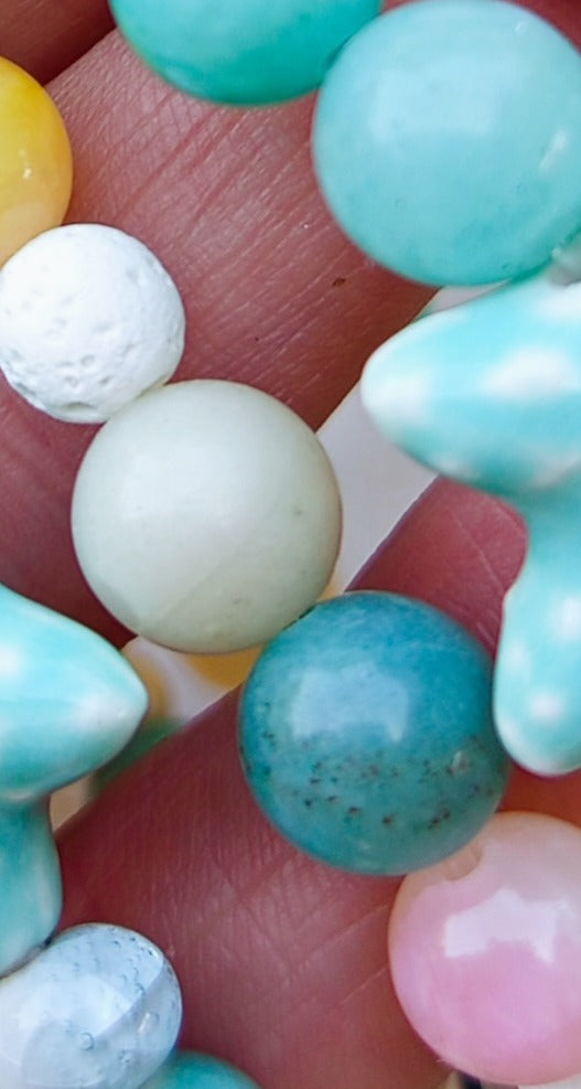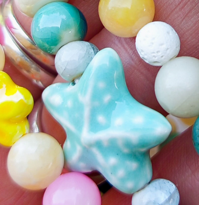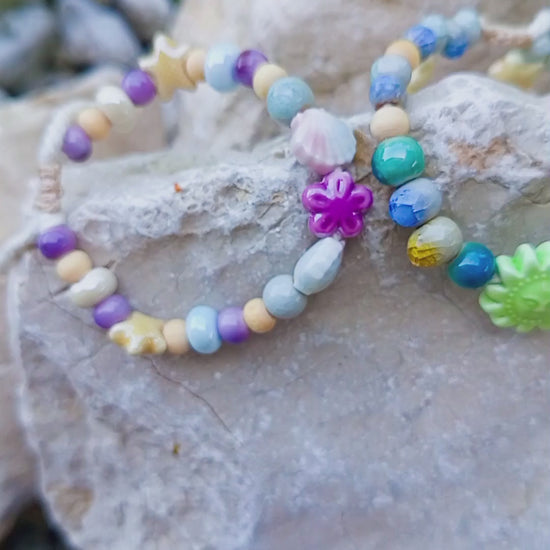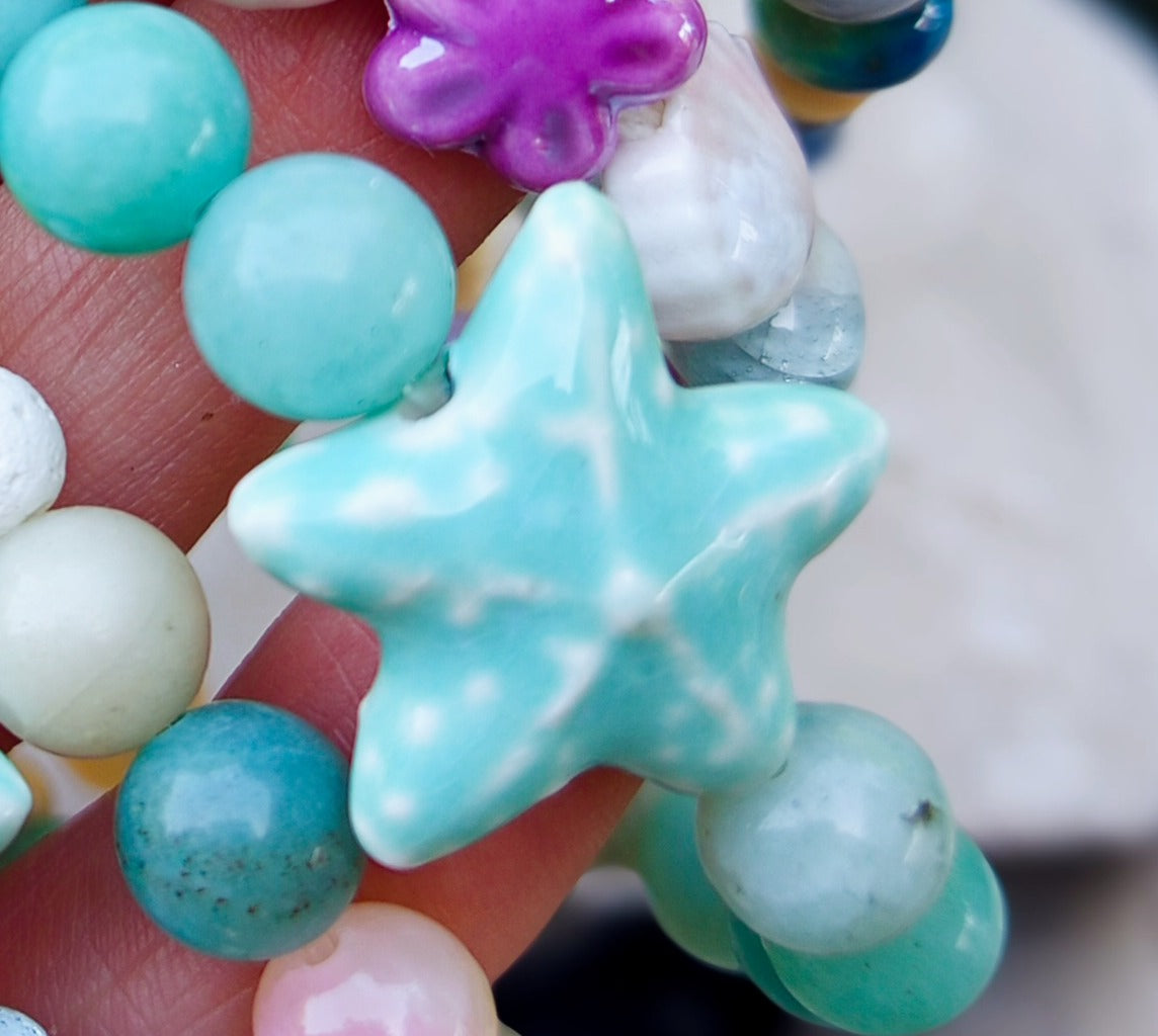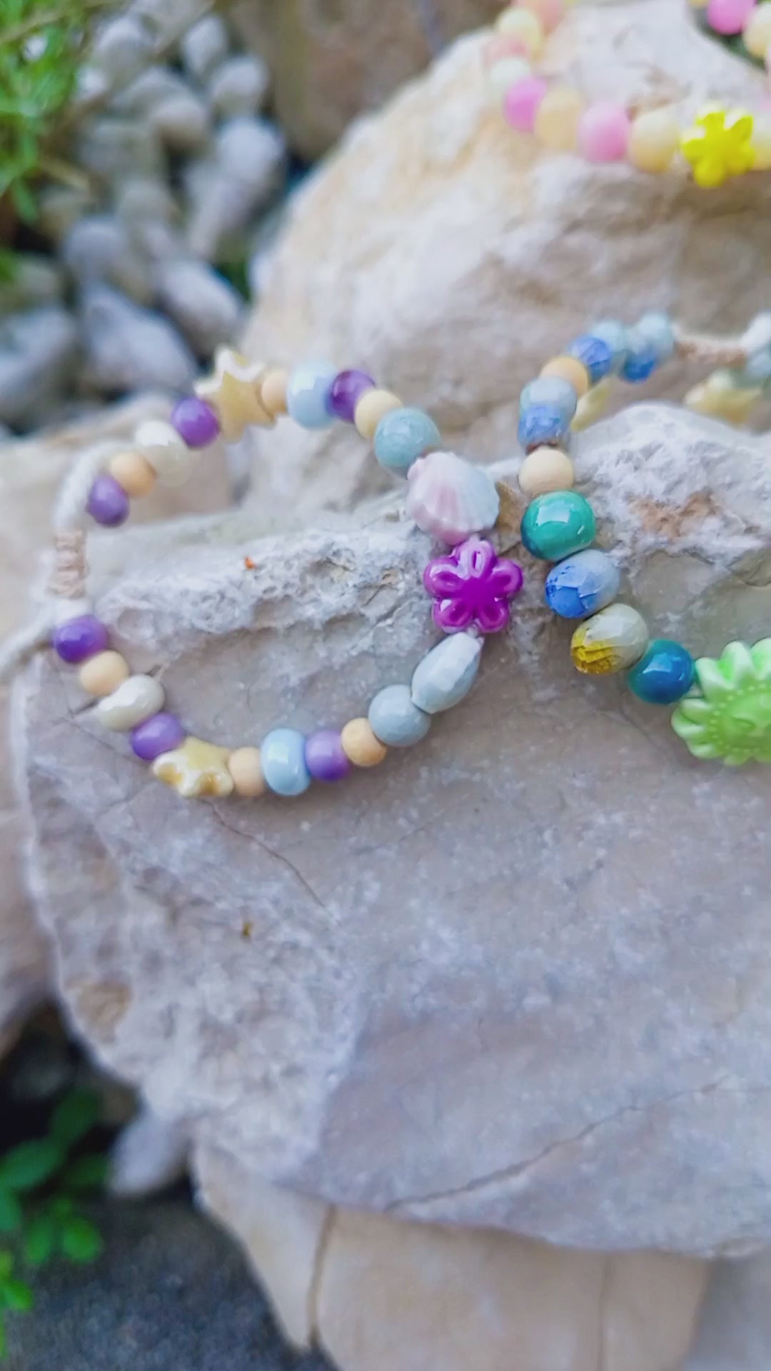 A vibrant mix of pastel and ocean tones, natural beads, and playful charms like flowers and stars – these Tropical Joy Bracelets are handmade to spark happiness. Inspired by sunny days, salty skin, and spontaneous adventures, each bracelet tells its own joyful story. Perfect worn solo or stacked for that true boho beach vibe.